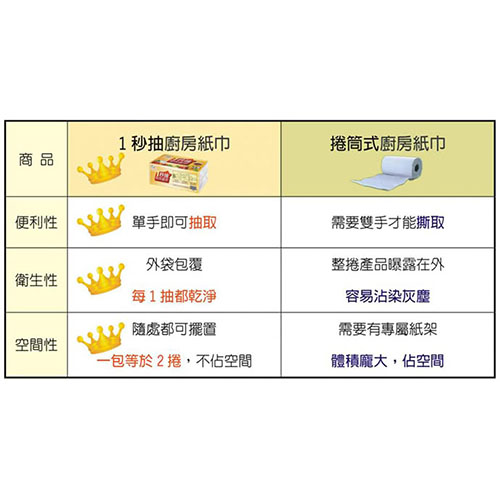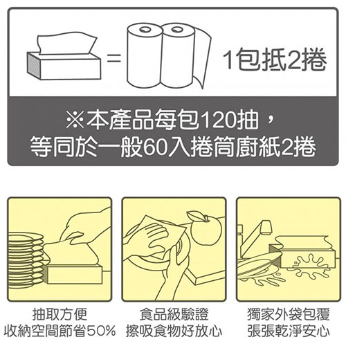 獨家外袋包覆,防灰塵、水氣沾染,確保您取用每張廚紙的乾淨與衛生