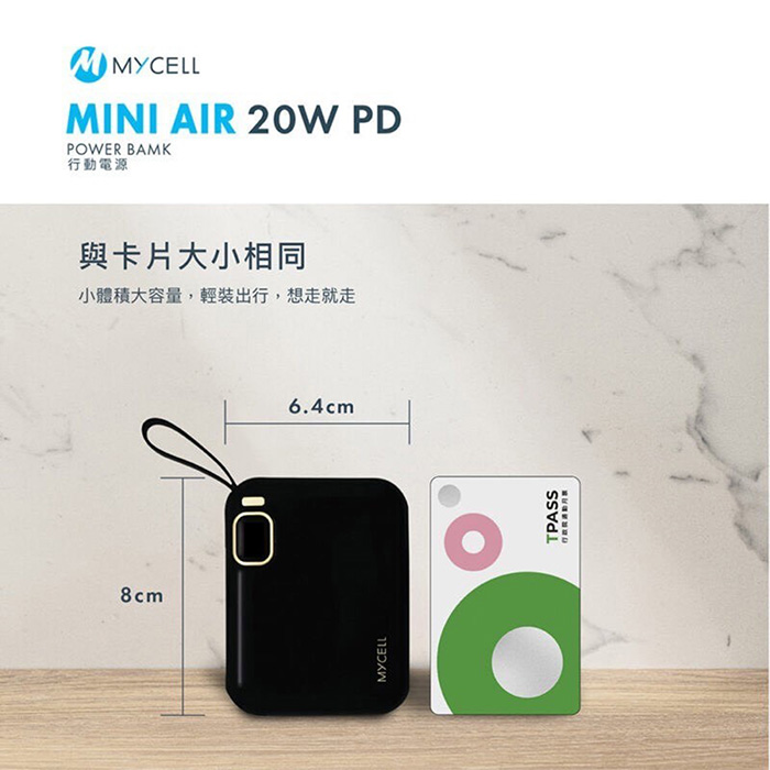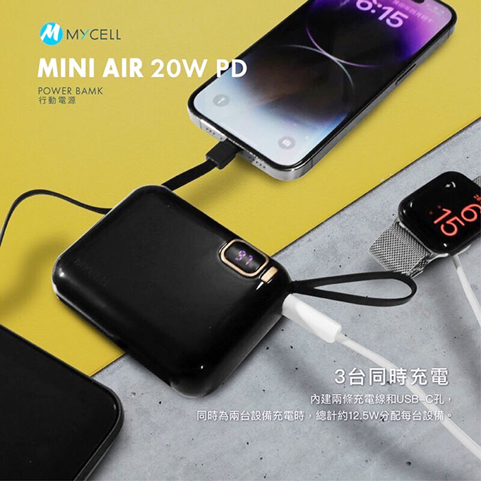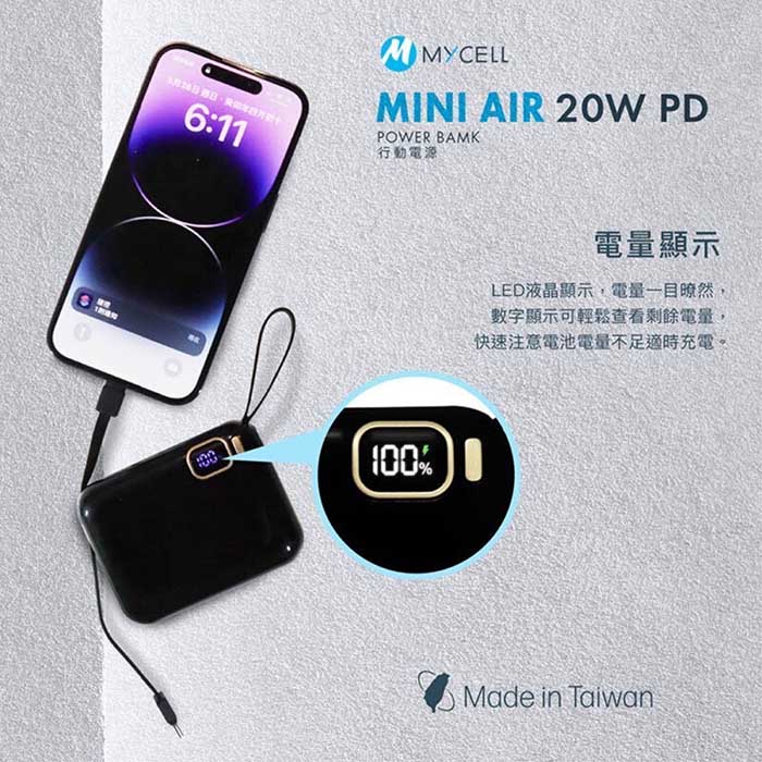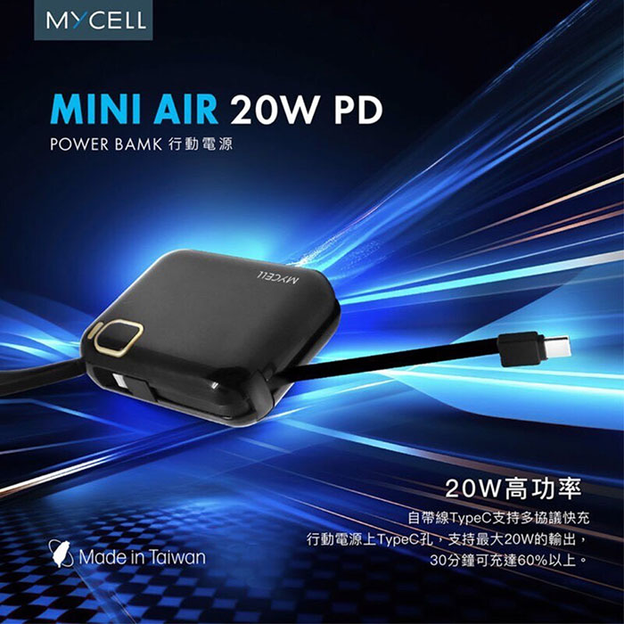 【Mycell】Mini Air PD 20W 10000mAh 可拆式雙出線 全協議閃充行動電源(台灣製造)