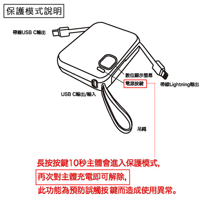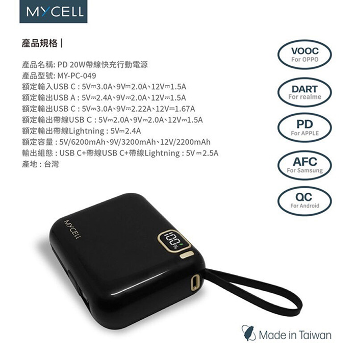 Mycell大容量帶線快充行動電源MY-PC-049,