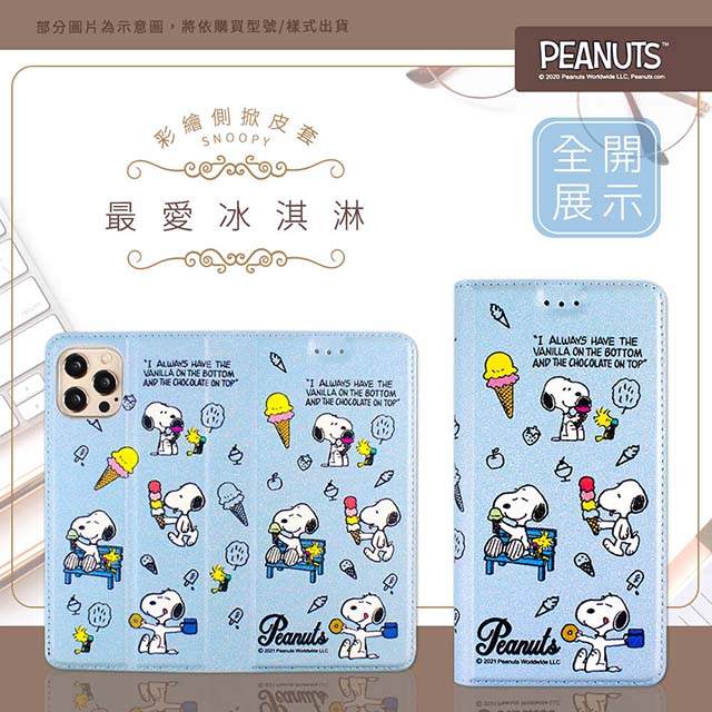 【SNOOPY/史努比】iPhone 15 Plus (6.7 吋) 彩繪可站立皮套(最愛冰淇淋)
