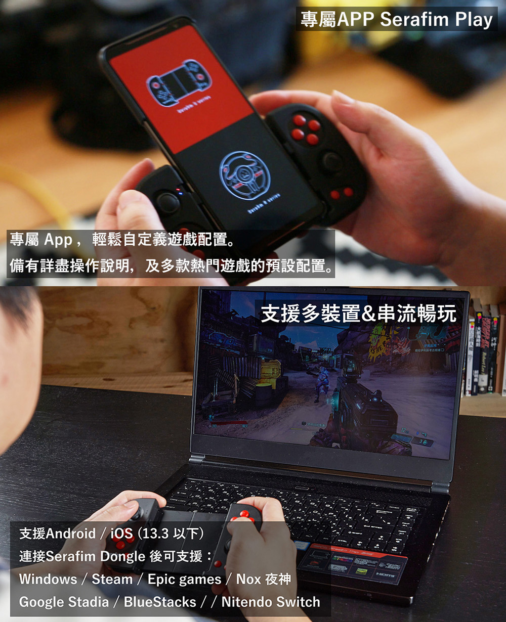 Serafim S1 手遊藍芽智能手把 黑色(支援安卓/Steam/Switch dongle)