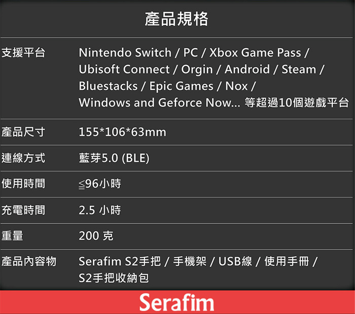 Serafim S2 手遊藍芽智能手把(支援安卓/Steam/Switch dongle)