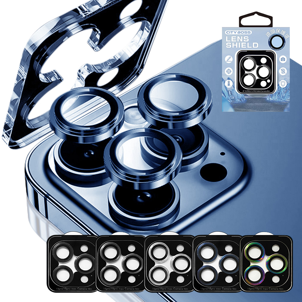 CITY BOSS for iPhone 15Pro/15Pro Max 鋁合金+康寧玻璃鏡頭貼(帶貼膜神器)-3眼