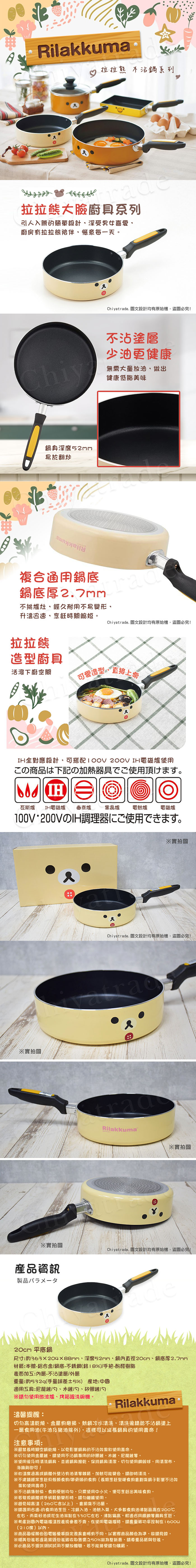 【百科良品】拉拉熊 懶懶熊 不沾鍋 平底鍋 煎鍋 炒鍋 20cm IH全對應設計(日本境內版)