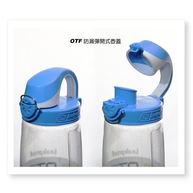 OTF(On The Fly)是最新的防漏、大出水量運動型水壺。最新防漏彈開式壺蓋,採用單手按鈕設計,容易打開與關閉。 打開角度大,易於飲用。半圓鎖環更加防漏。63mm的大口徑,容易清潔、裝填冰塊和調製飲料。飲水口採用最高品 質矽脂防漏塞,安全衛生。