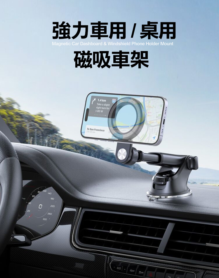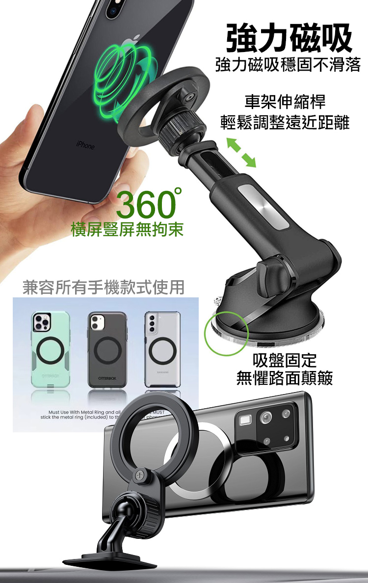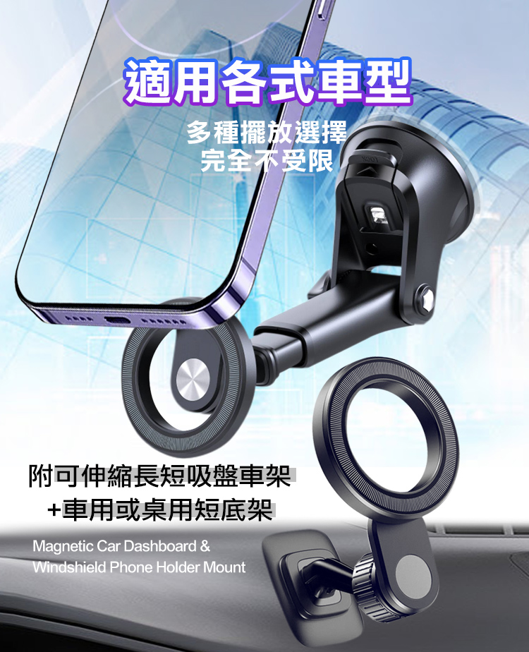 CITY環狀超強磁吸車架 Magsafe伸縮吸盤+儀表台黏式短底座 車用手機支架 手機支架
