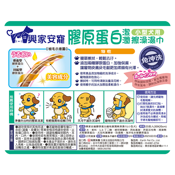 興家安寵 膠原蛋白寵物潔潤擦澡濕巾 (小型犬用)25枚*2包