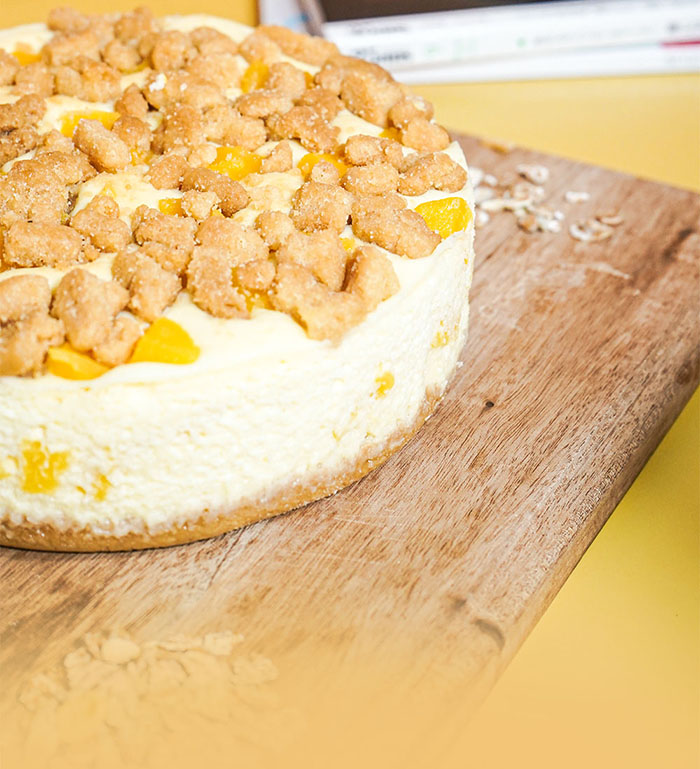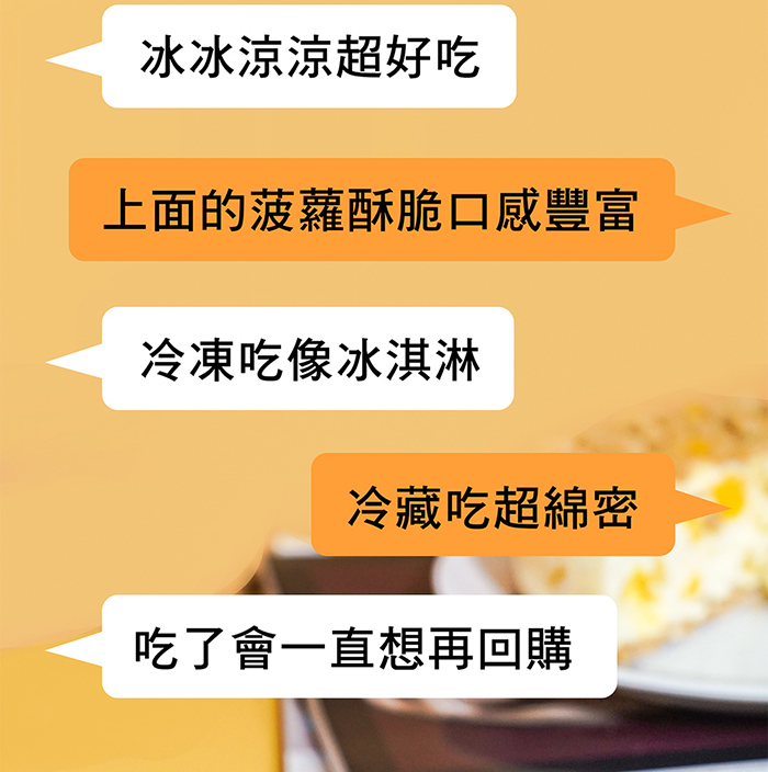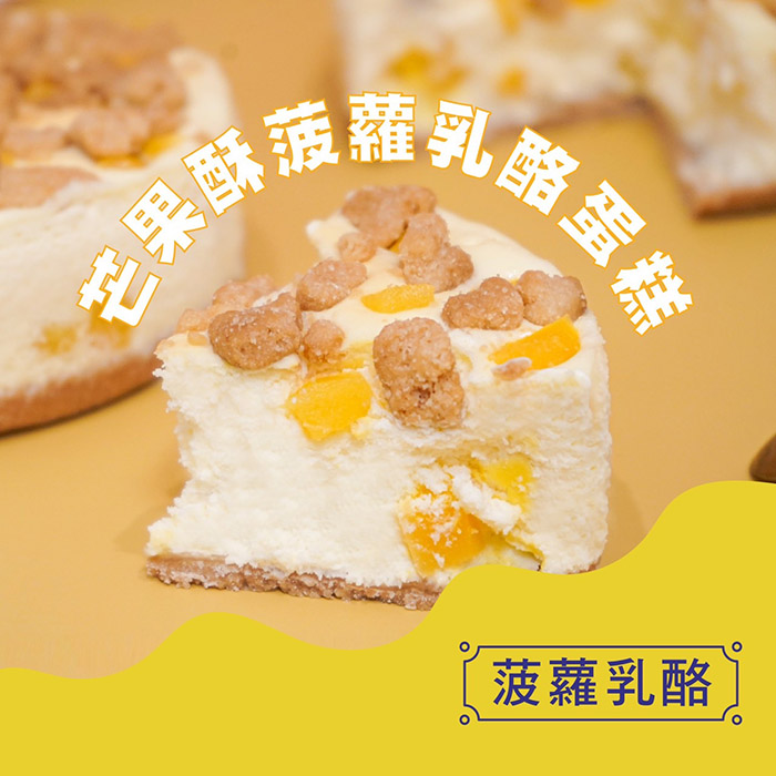 採用紐西蘭特級奶油乳酪,上層鋪滿手工新鮮製作香甜爽口酥菠蘿粒,以及黃澄澄的芒果丁妝點著,每一口都大大滿足您的味蕾。