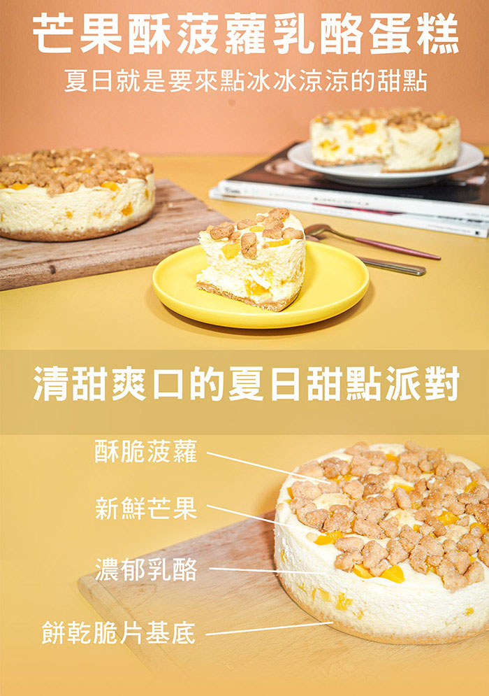 【超比食品】甜點夢工廠-芒果酥菠蘿乳酪蛋糕6吋