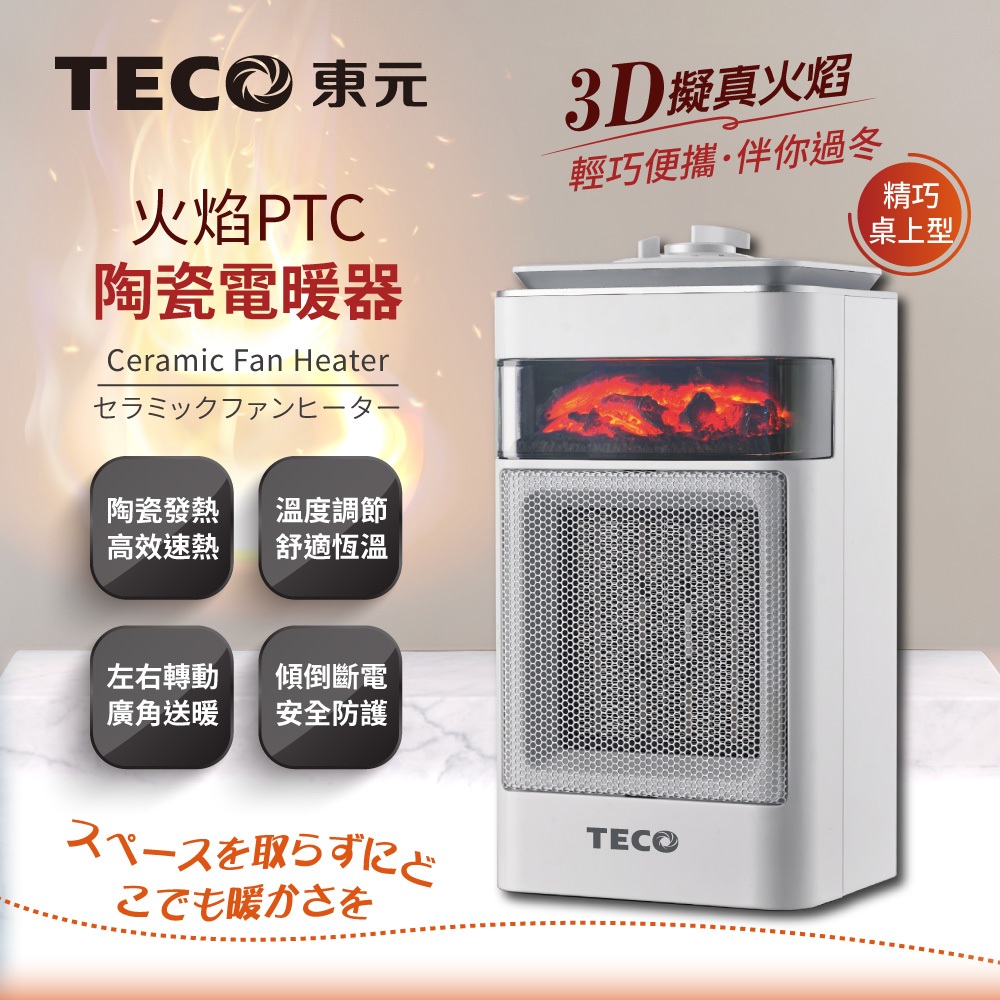 【東元】火焰PTC陶瓷電暖器XYFYN4001CBW 電暖爐 暖氣機 電暖器