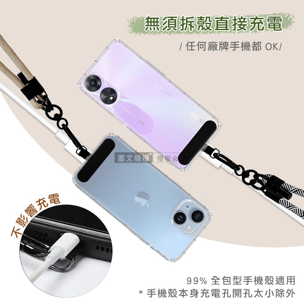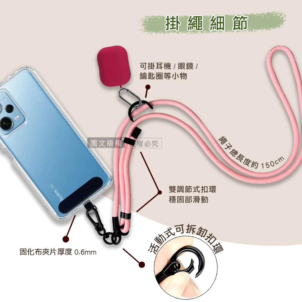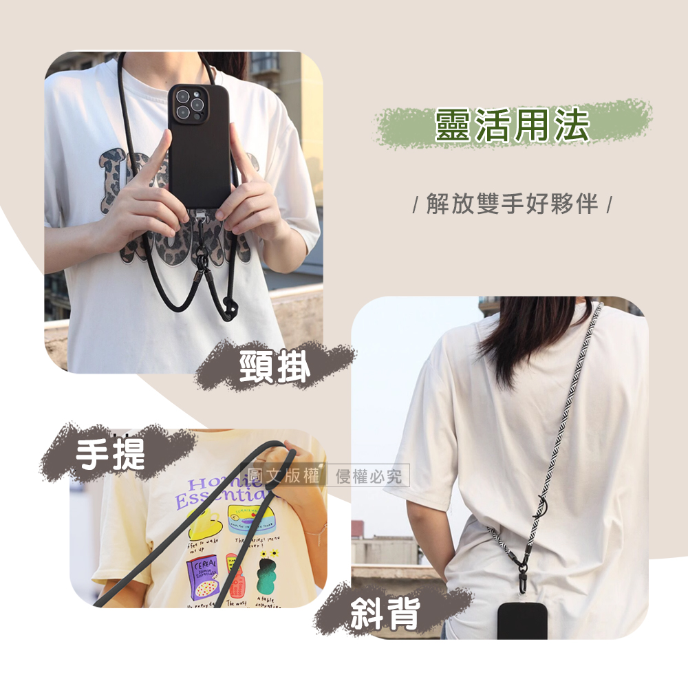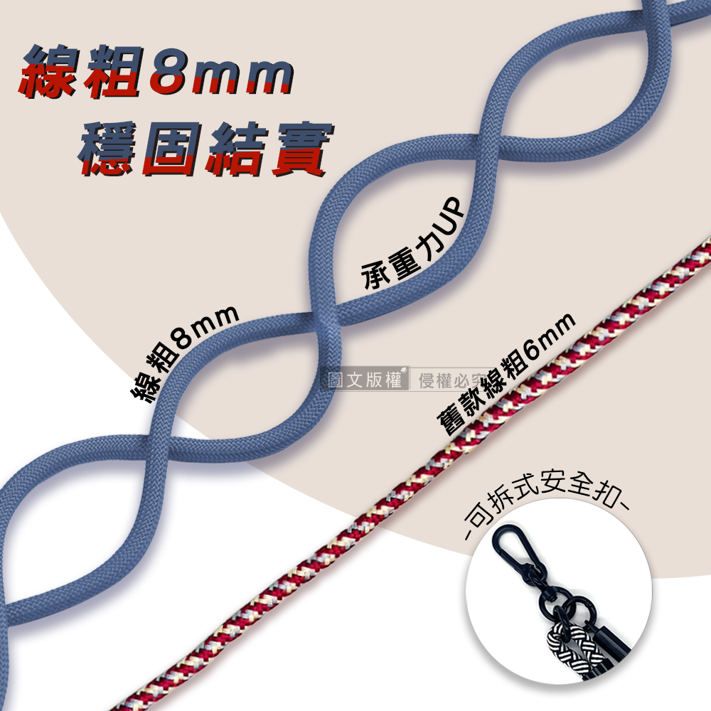 野趣旅行 強韌加粗8mm野營繩款 多功能調節式手機掛繩(附手機夾片) 6色-斜紋黑