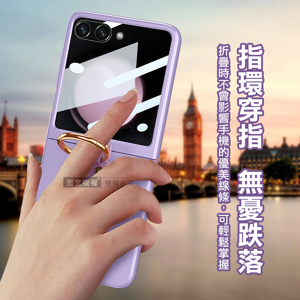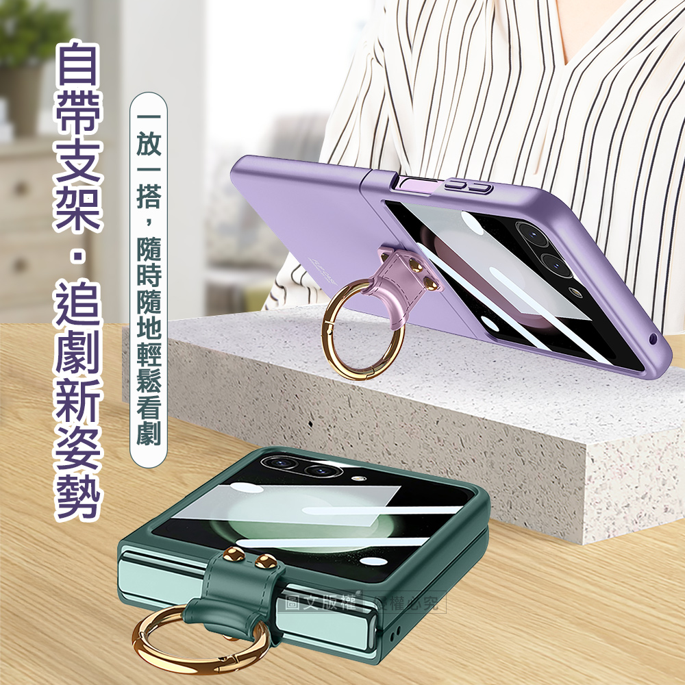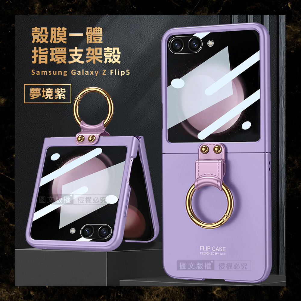 三星 Samsung Galaxy Z Flip5 殼膜一體 膚感指環支架殼+鋼化膜 手機殼(夢境紫)