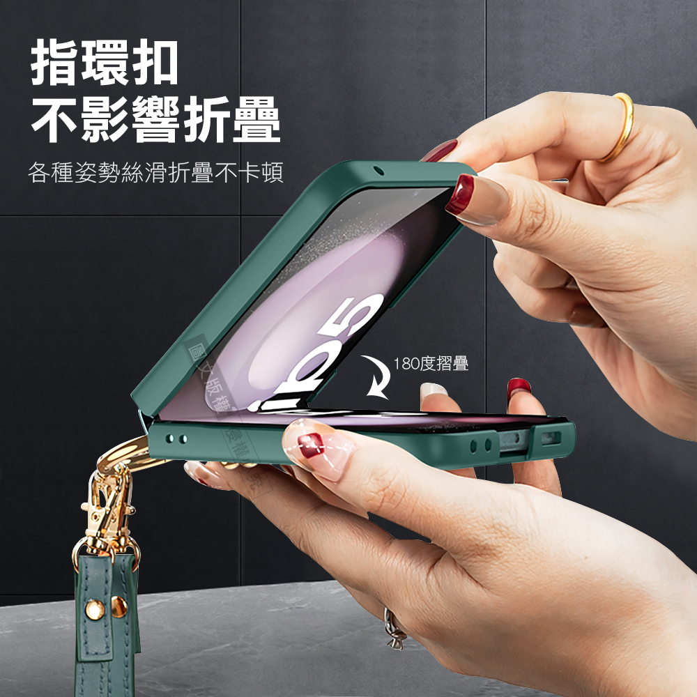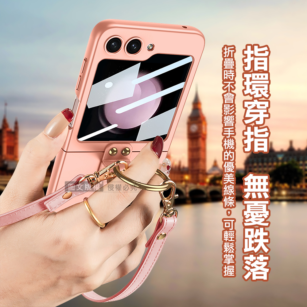 三星 Samsung Galaxy Z Flip5 殼膜一體 膚感指環支架殼+鋼化膜 手機殼(氣質銀)