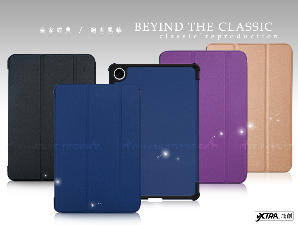 VXTRA 三星 Galaxy Tab A9+ 11吋 經典皮紋三折皮套(品味金)+9H鋼化玻璃貼(合購價)