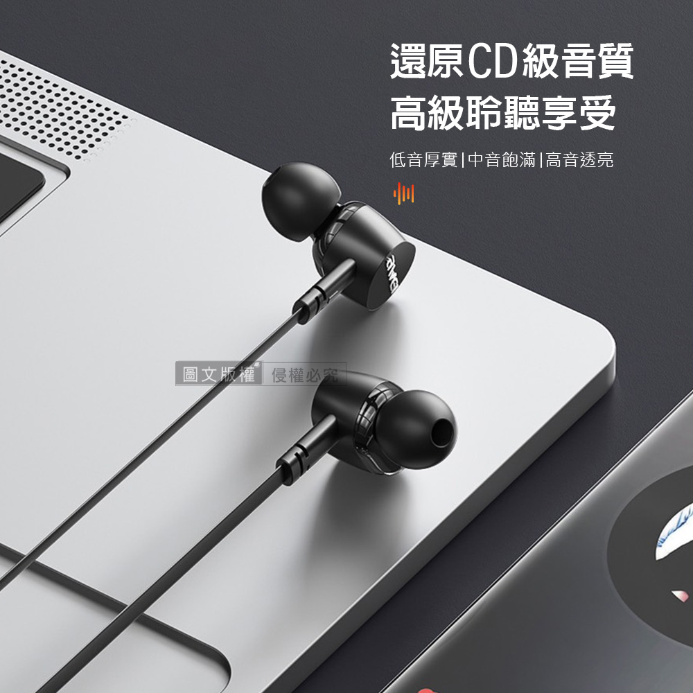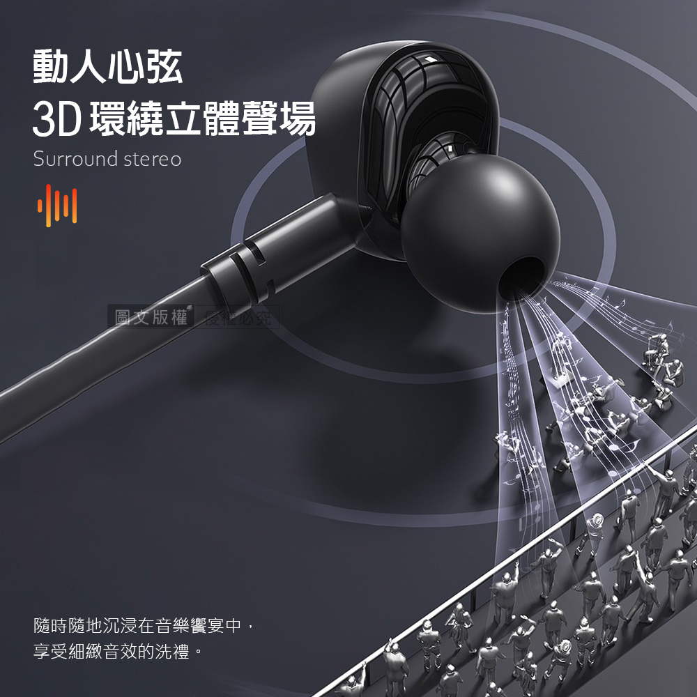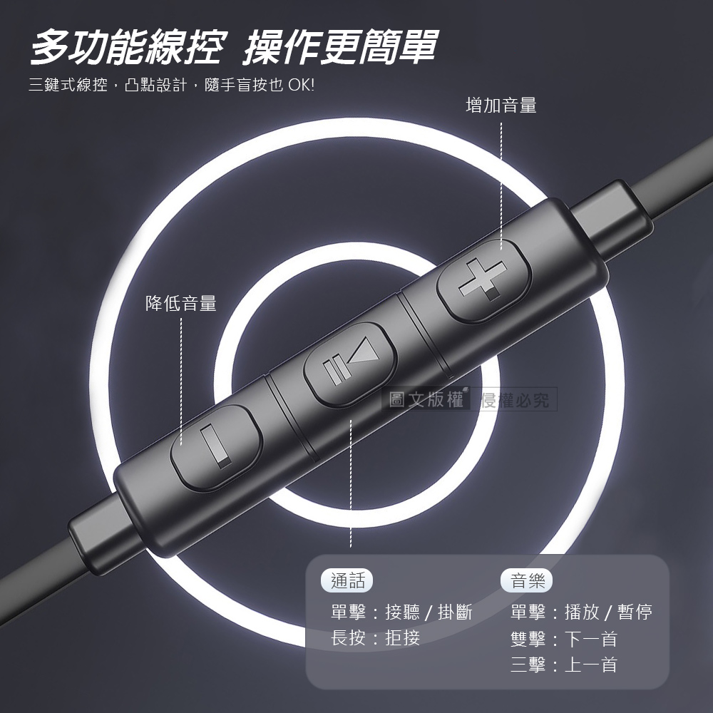 高音質入耳式 降噪HiFi立體聲線控耳機 內置麥克風 Type-C接頭(黑)