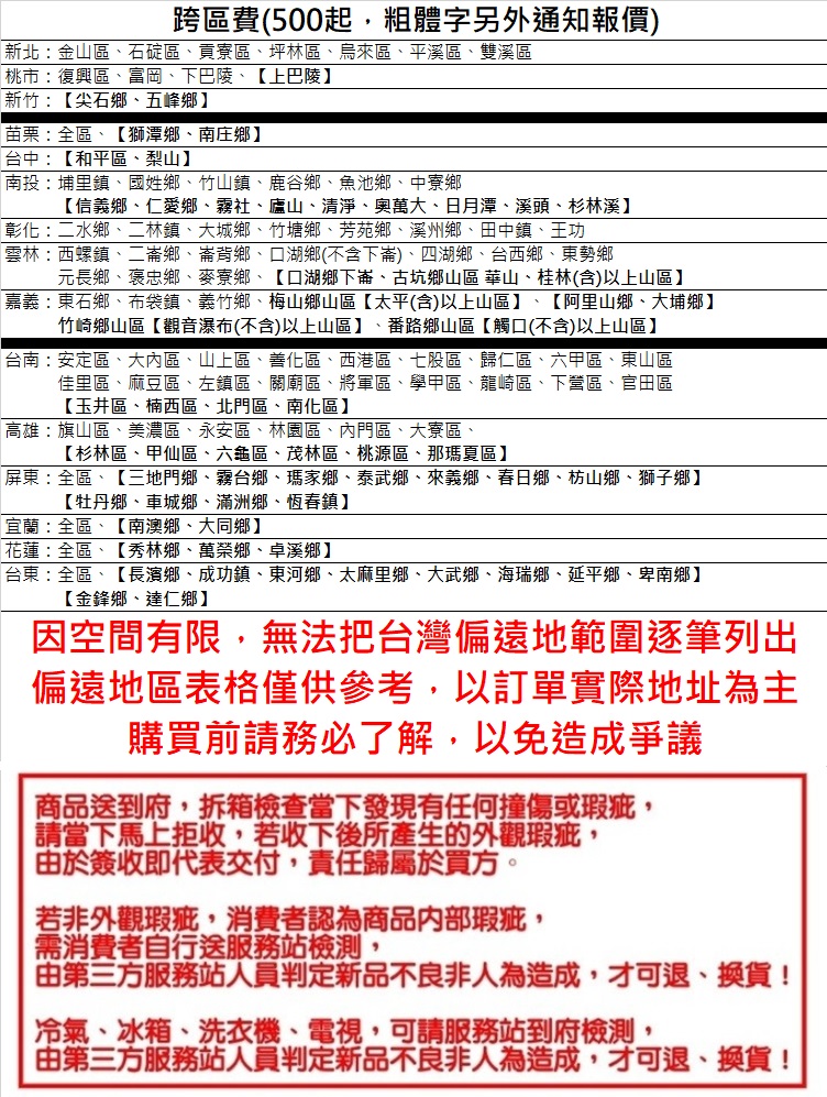 『偏遠地區及外島不送!』或電聯報價跨區費用(需先匯款)