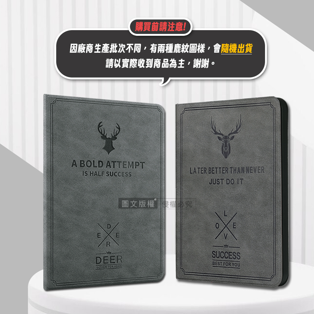VXTRA 三星 Galaxy Tab A9 8.7吋 北歐鹿紋風格平板皮套(清水灰)+9H鋼化玻璃貼(合購價)