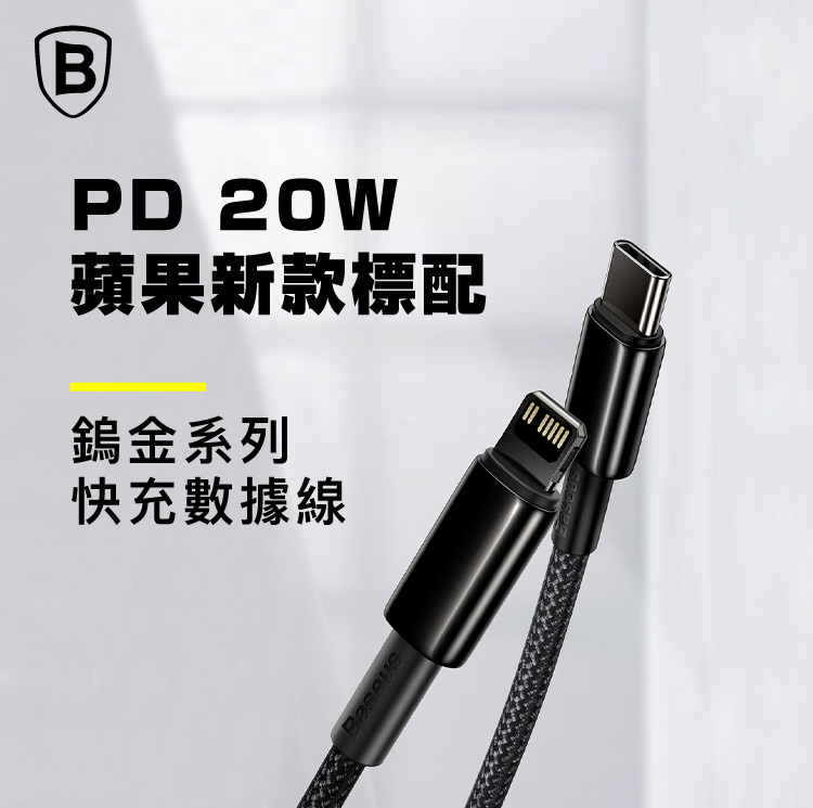 Baseus倍思 鎢金 PD Type-C to Lightning 快充傳輸充電線(20W)iphone/ipad系列快充-100cm