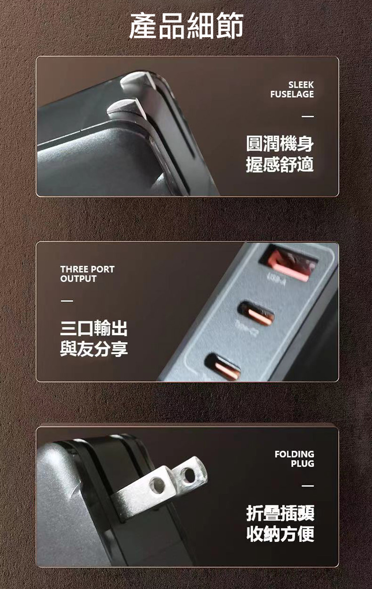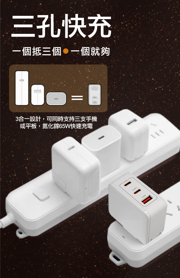 2 USB-C + 1 USB-A 三口多兼容快充