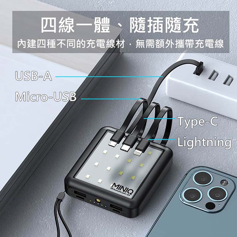 MINIQ 露營燈LED照明/自帶四線行動電源(台灣製造)
