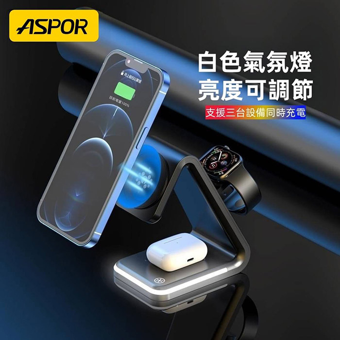 MagSafe15W 四合一磁吸無線充電座(iPhone/Watch/Airpods/夜燈)