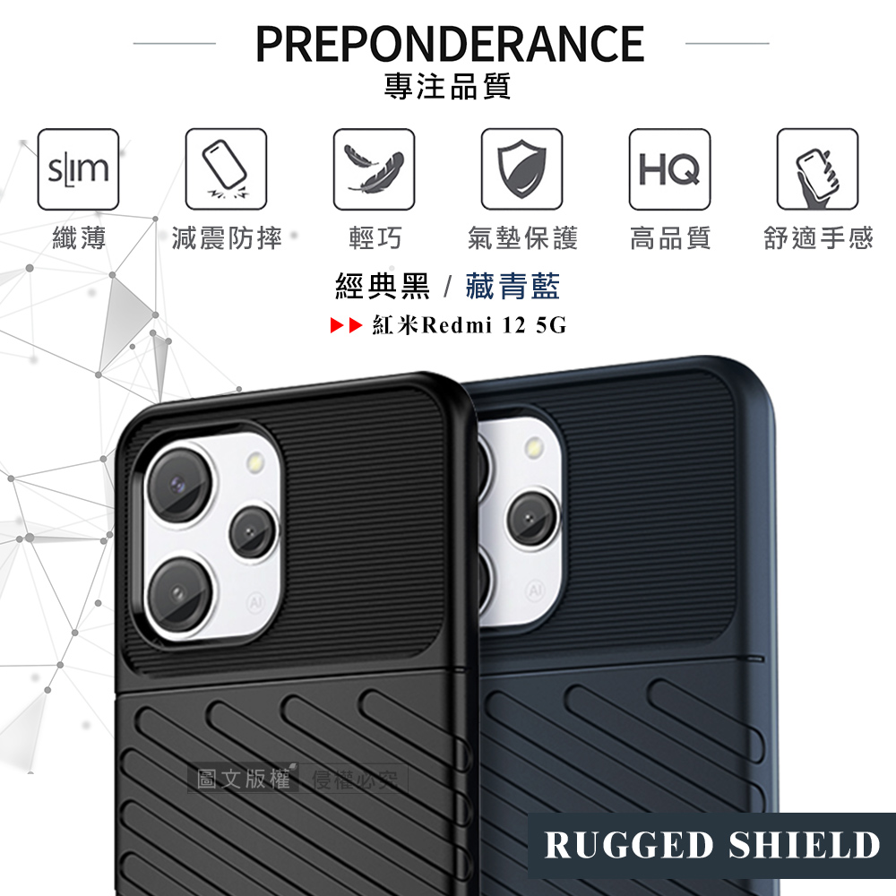 RUGGED SHIELD 雷霆系列 紅米Redmi 12 5G 軍工氣墊減震防摔手機殼(經典黑)