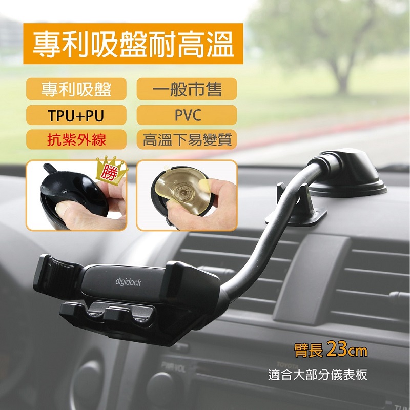 【digidock】按壓式吸盤 靈敏加長型重力手機架 汽車車架 支架 固定架 導航架 GPS 吸盤 (DG2SU-06)