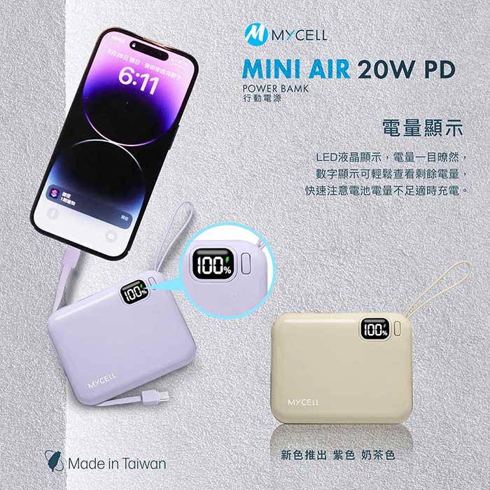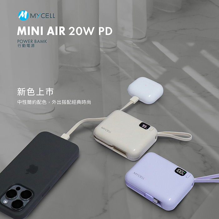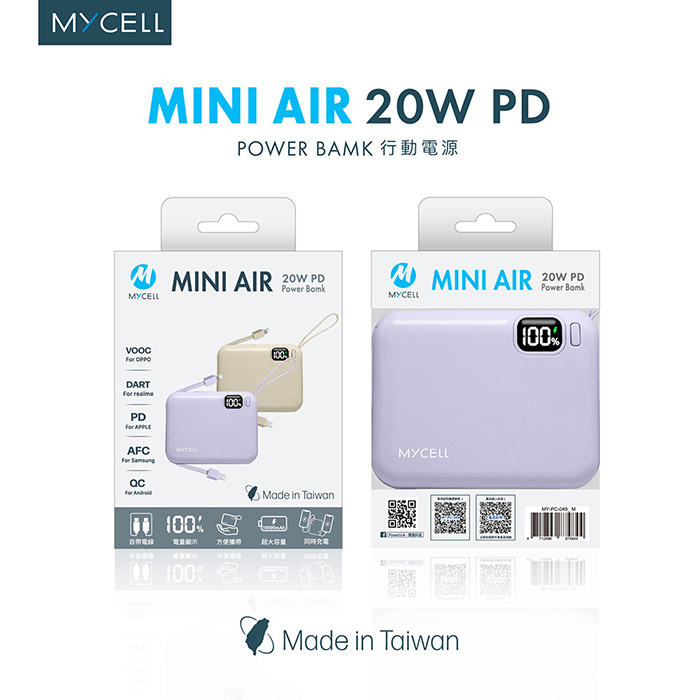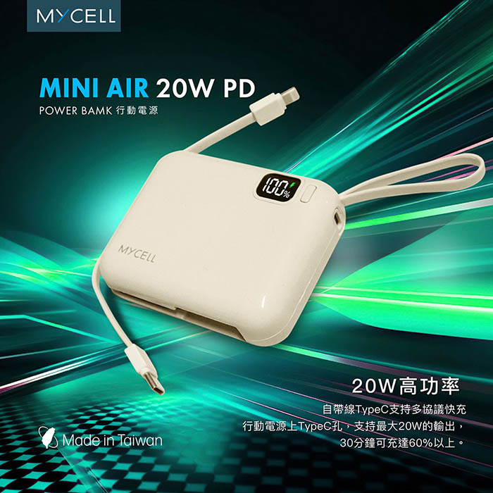 【Mycell】Mini Air PD 20W 10000mAh 可拆式雙出線 全協議閃充行動電源(台灣製造)