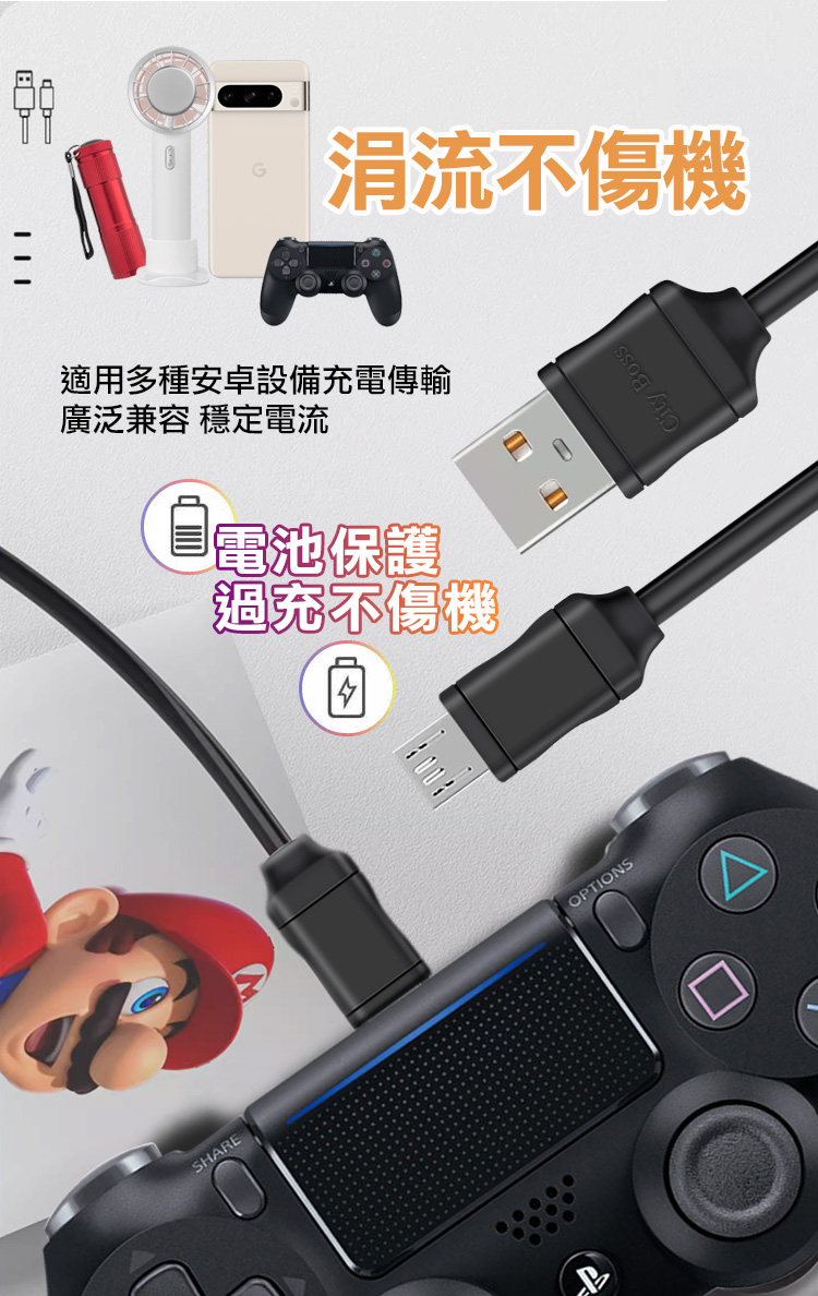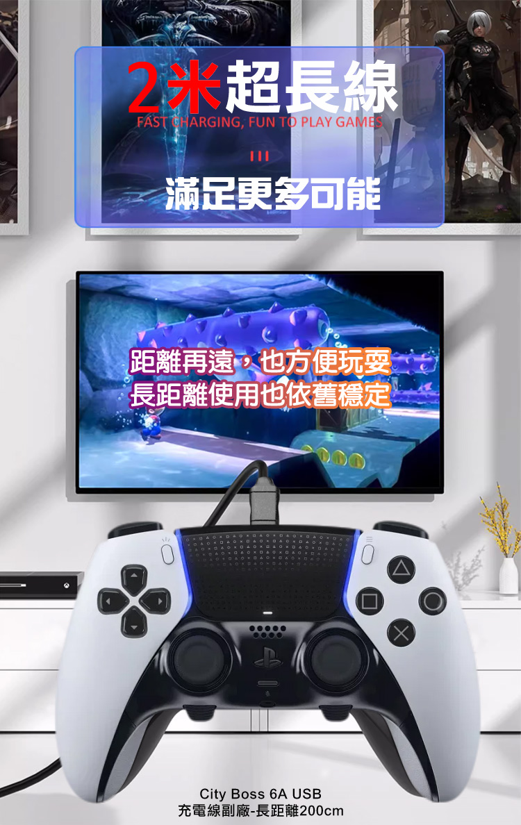 線材長度:約200cm 可以保持距離邊玩遊戲邊充電