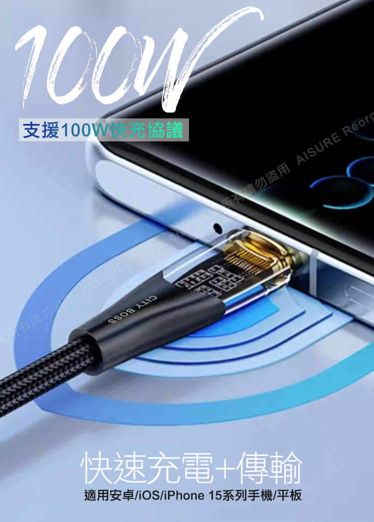 支援 100W 快充協議 適用安卓/IOS/iP15系列