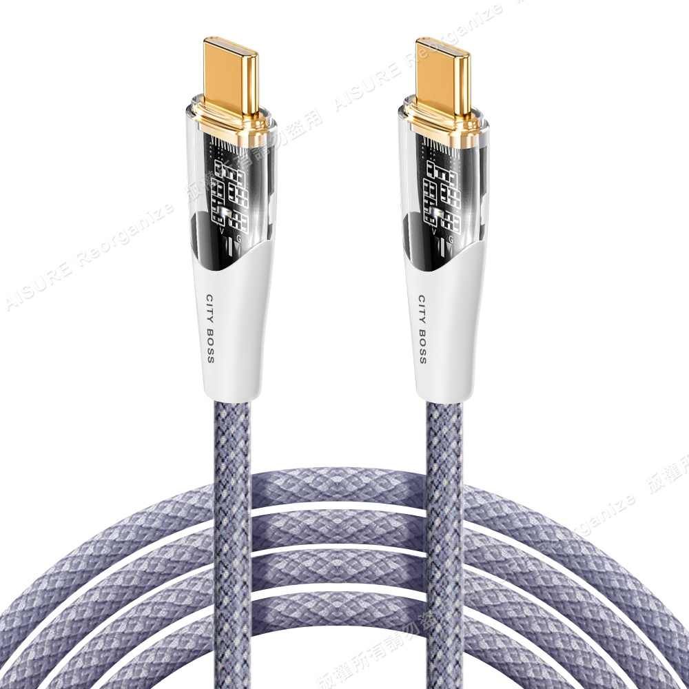 CITY BOSS馬卡龍 Type-C to Type-C 100W小夜燈充電傳輸線-300cm - 紫色