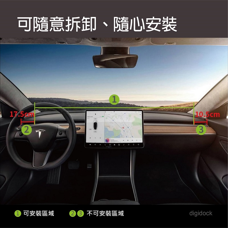 【digidock】MagSafe儀表板卡式磁吸式手機架 特斯拉汽車車架 支架 固定架 導航架 GPS (MSC3-T3Y1)