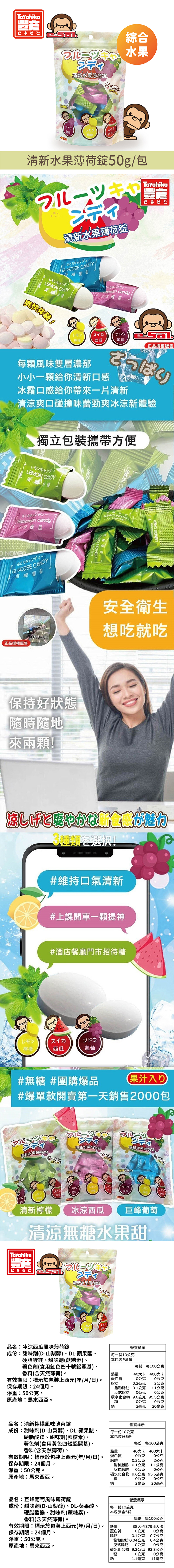 【Toyahika豐彥】綜合水果風味-綜合薄荷錠 12袋(50g/袋)