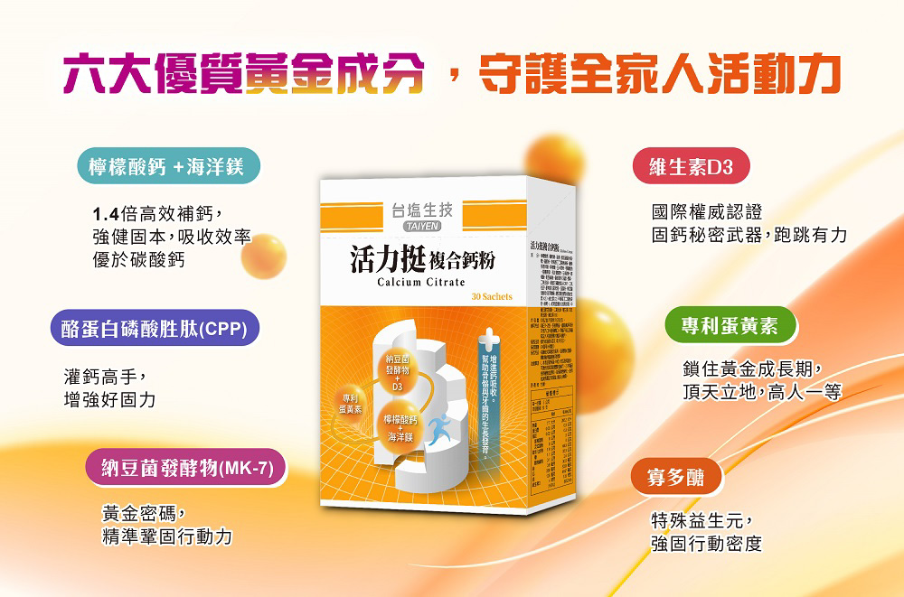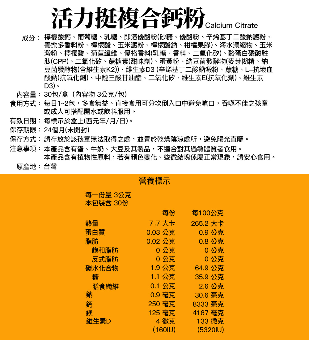 台鹽生技 活力挺複合鈣粉(30包x3盒,共90包)