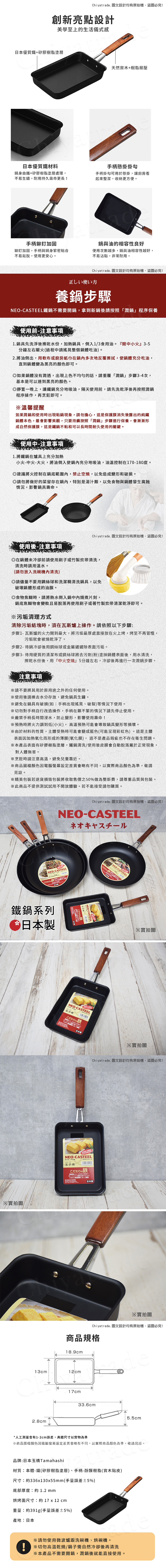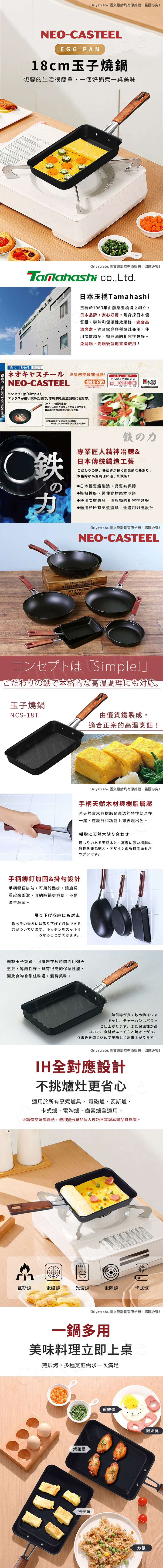 【日本Tamahashi】日本製 匠人純鐵 NEO-CASTEEL 鐵鍋 煎鍋 玉子燒鍋 18cm(IH全對應)