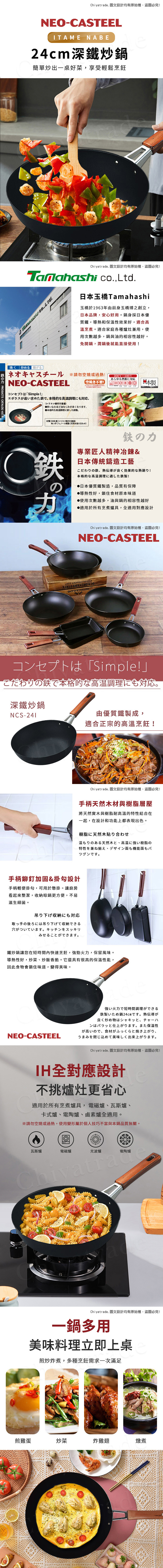 【日本Tamahashi】日本製 匠人純鐵 NEO-CASTEEL 鐵鍋 平底深炒鍋 煎鍋 24cm(IH全對應)