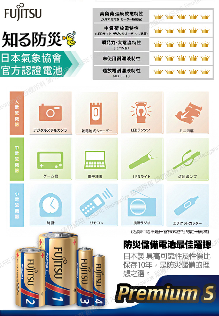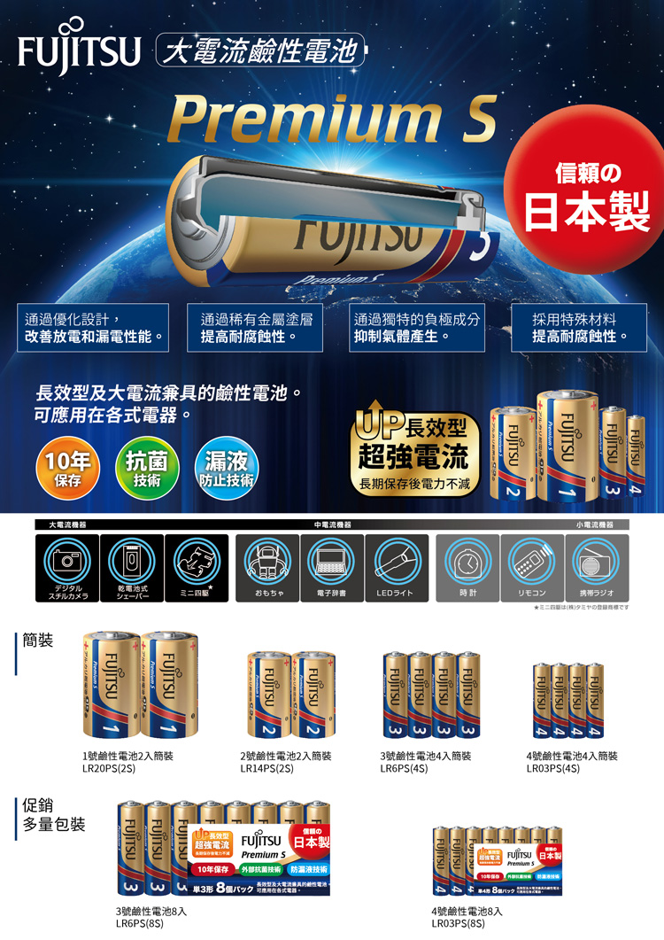 日本製FUJITSU富士通 Premium S(LR14PS-2S)超長效強電流鹼性電池-2號C 精裝版20入裝