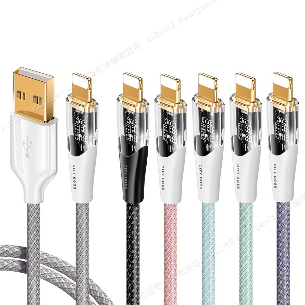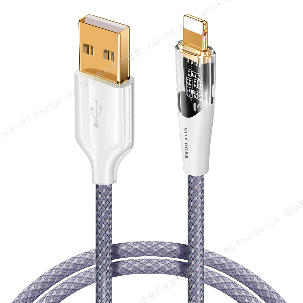 CITY BOSS馬卡龍 USB to Lightning 45W小夜燈充電傳輸線-120cm - 紫色