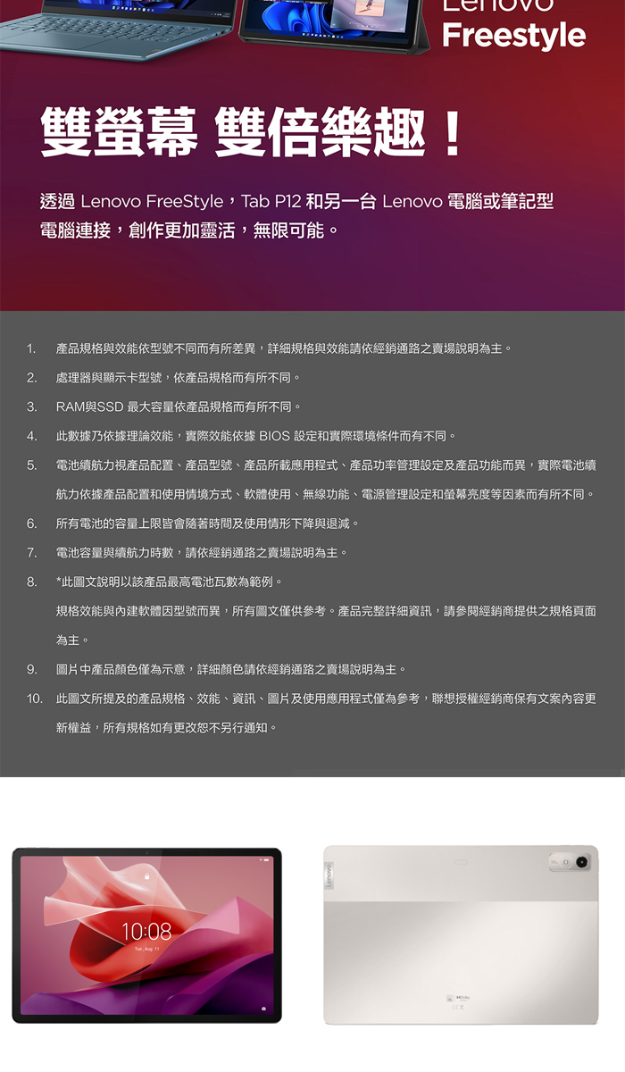 (含觸控筆送鍵盤) Lenovo 聯想 Tab P12 ZACH0169TW 12.7吋/Dimensity 7050/8G/256G 平版電腦