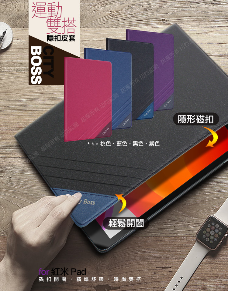 CITY BOSS for 紅米 Pad 運動雙搭隱扣皮套-桃