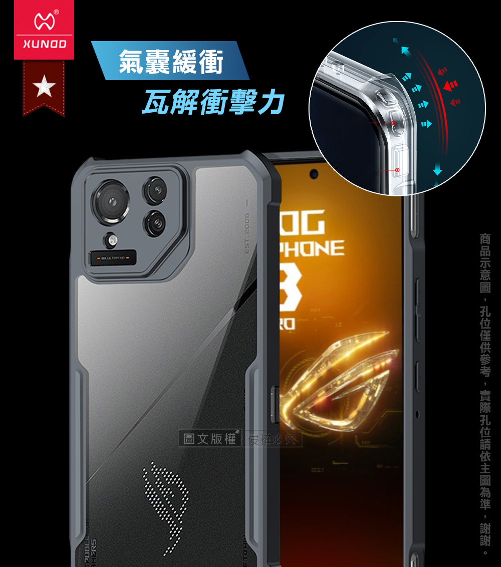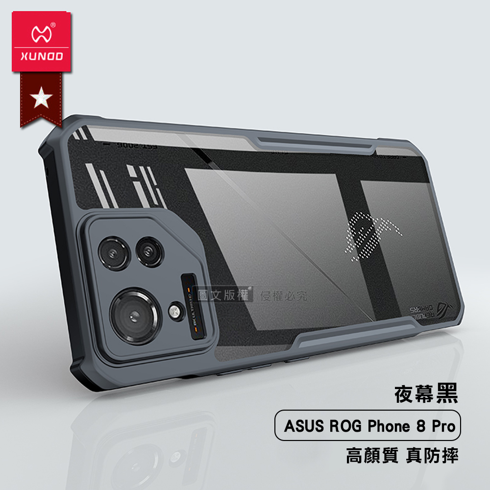XUNDD訊迪 軍事防摔 ASUS ROG Phone 8 Pro 鏡頭全包覆 清透保護殼 手機殼(夜幕黑)