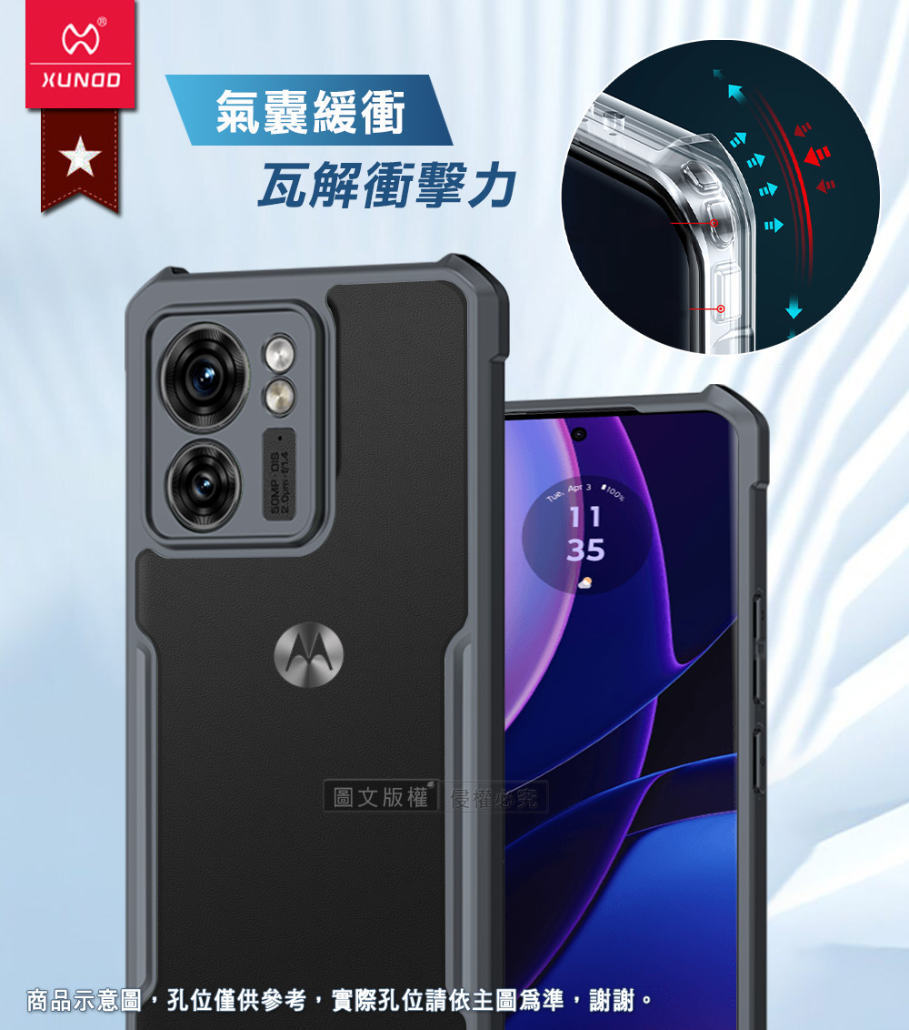 XUNDD訊迪 軍事防摔 Motorola edge 40 鏡頭全包覆 清透保護殼 手機殼(夜幕黑)