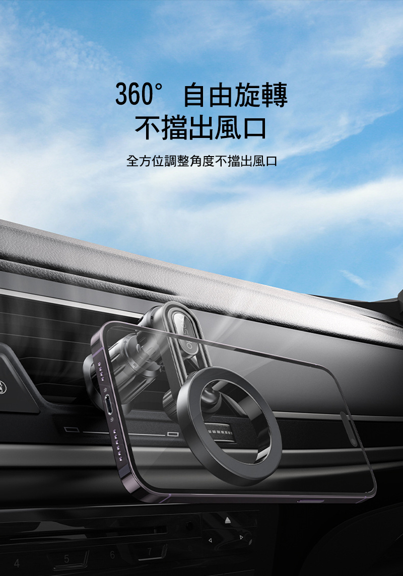 .360度自由旋轉,不擋出風口