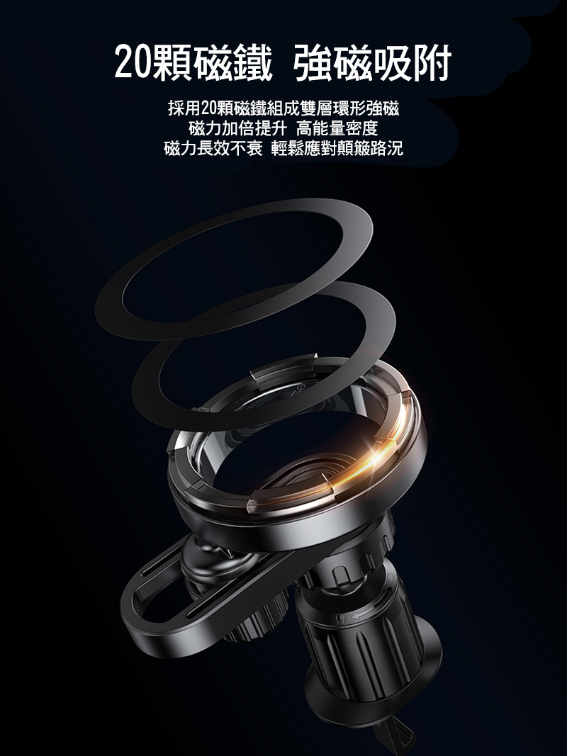 .20顆磁鐵,雙層環形強磁,顛簸不掉