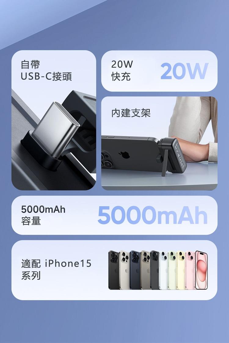 內容物:直插式膠囊行動電源20W 5000mAh,C to C充電線