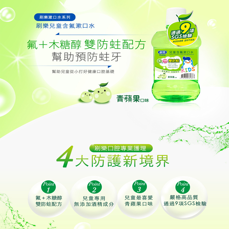 刷樂 兒童含氟漱口水500ml-青蘋果*3瓶