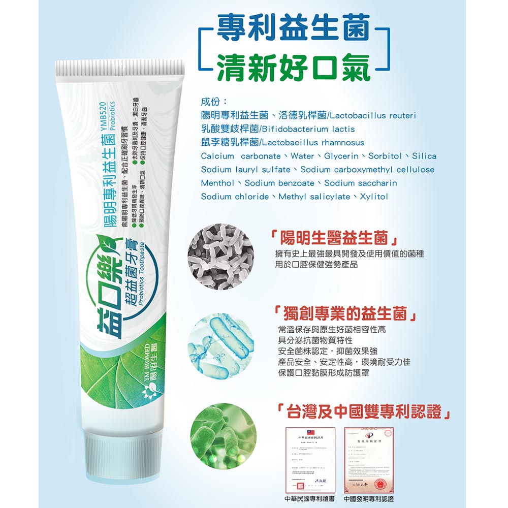 【陽明生醫】益口樂超益菌牙膏 x5盒(120g/條)