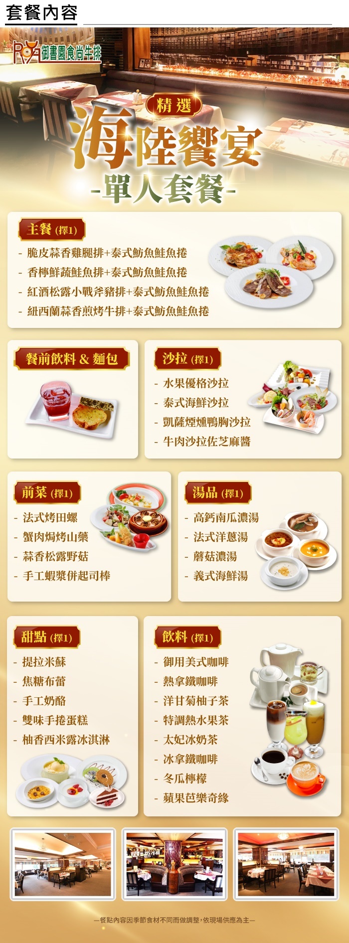 【台北】御書園食尚牛排-精選海陸饗宴單人套餐
