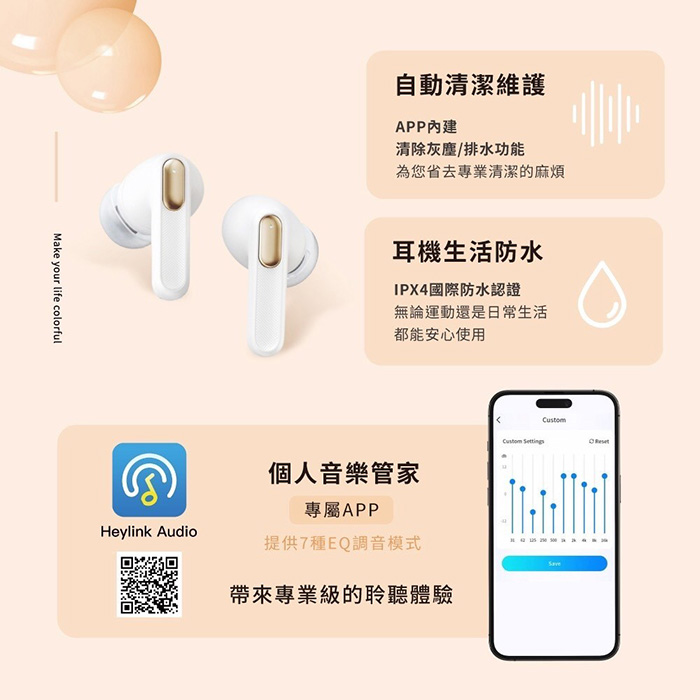 ◎ 音樂管家|專屬APP提供7種(6種預設+1種自定義)EQ調音模式,帶來專業級的聆聽體驗。