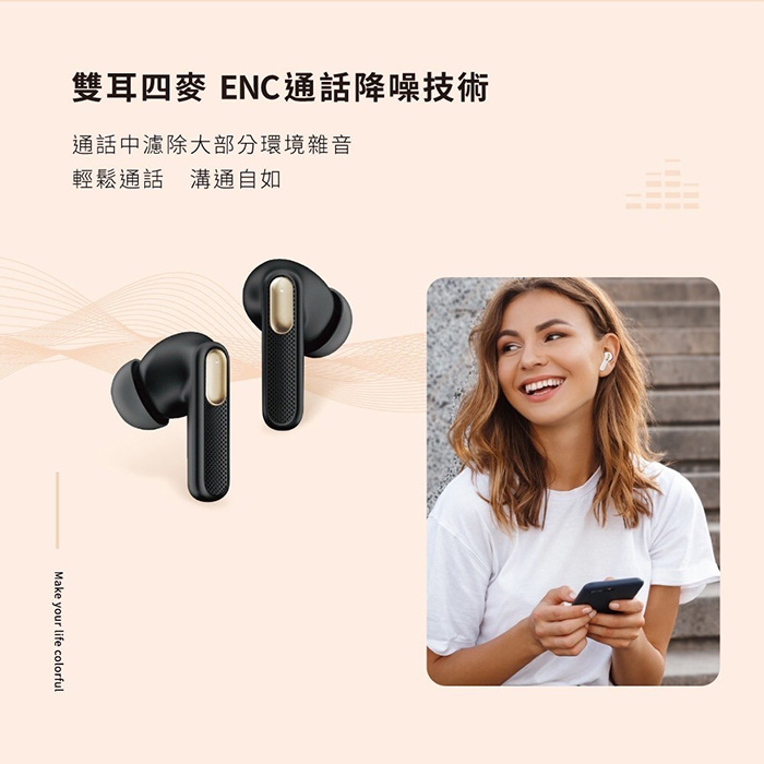 ◎ 人聲清晰通話無礙,ENC通話降噪技術和AI演算法,有效隔絕背景噪音,確保通話品質。